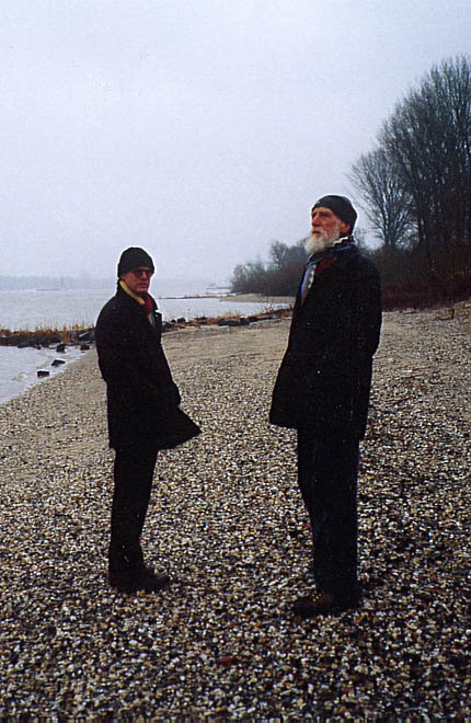 Felix Droese und Jacobus Kloppenburg am Rheinstrand unter der "Großen Achse"